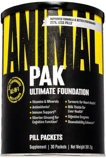 Animal Pak (30 Packs) este considerat „fundația” nutriției sportive încă din 1983. Acest complex legendar de tip „all-in-one” oferă peste 60 de ingrediente cheie – inclusiv vitamine, minerale, aminoacizi, antioxidanți și enzime digestive – într-un singur pachețel zilnic. Conceput special pentru culturiști și sportivi de rezistență, Animal Pak elimină carențele nutriționale și susține creșterea masei musculare, forța și recuperarea rapidă.